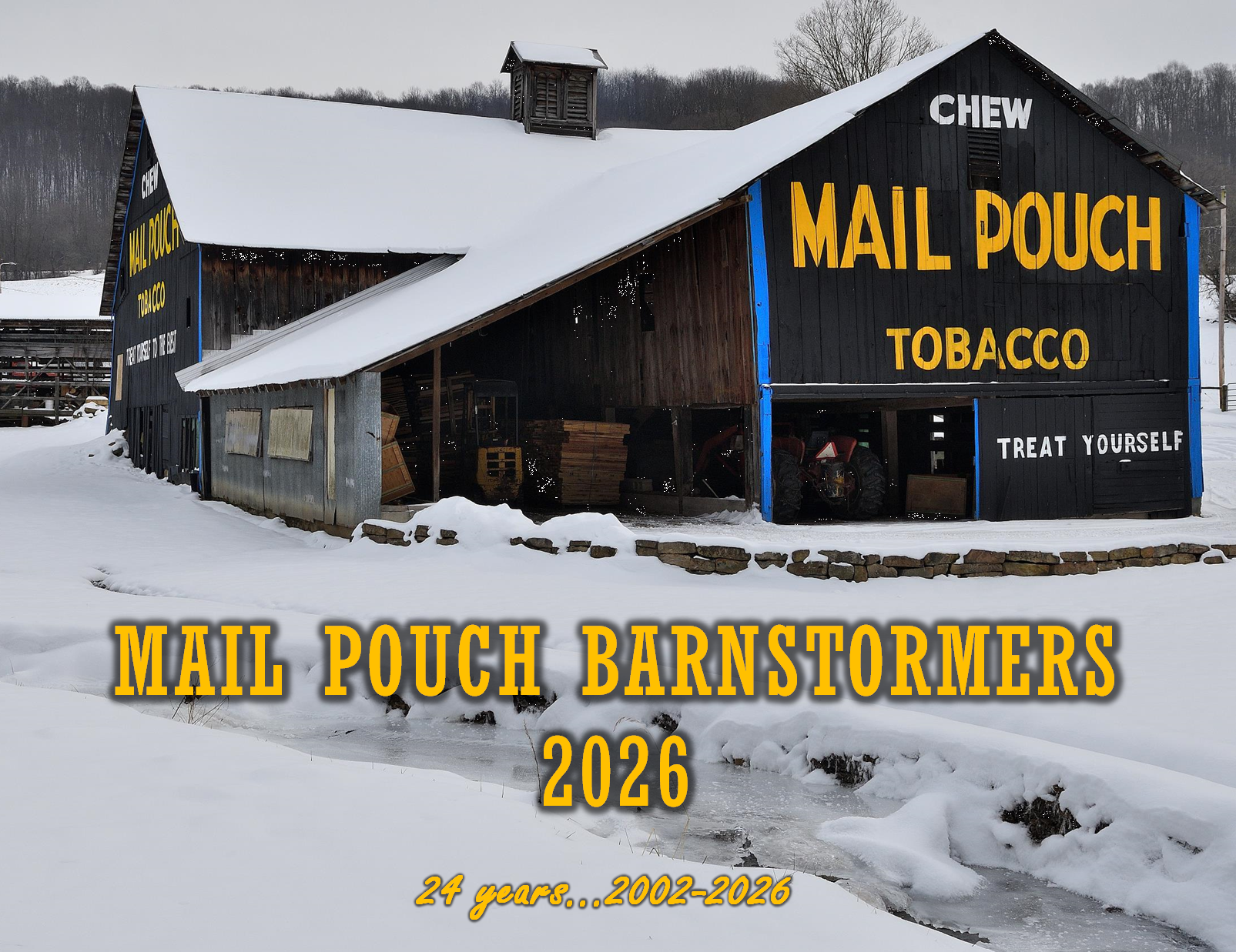 The 12th annual Mail Pouch Barnstormers Calendar features 12 photographs of Mail Pouch Barns covering all seasons of the year, taken by members of the Barnstormers. Supply is limited and orders will be filled on a first-come basis. Orders will hopefully be shipped mid-December. Calendar pages are 8.5″ x 11″.