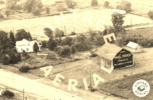 Photo 3 the bleed through of the old Mail Pouch sign is barely distinguishable. The bleed through is more apparent in Photo 6 so the inlarged inset view (Photo 5) is provided to show the bleed through.