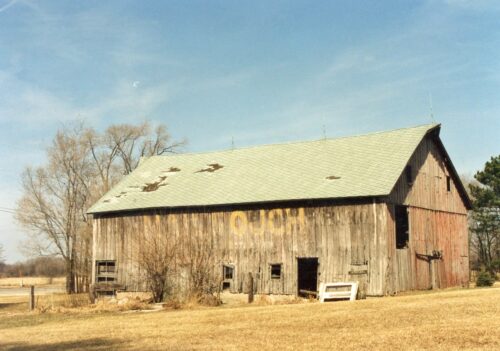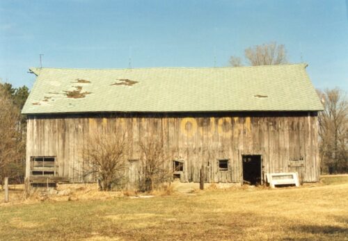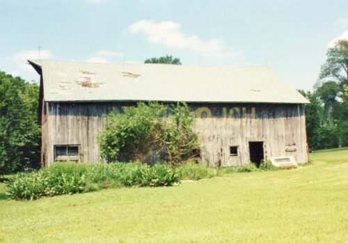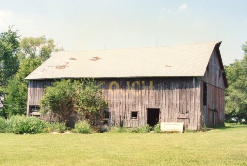 *GONE* (razed and removed) Along the northeast side of E US-35 northwest of the intersection with US-30 by 8.0 mles. The barn was on the right side of the highway just after turning in a northwest direction. The Mail Pouch sign faced south. One side. Original black background.