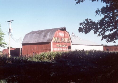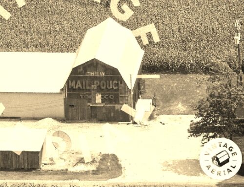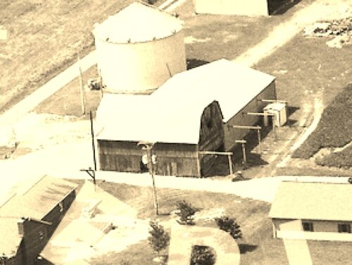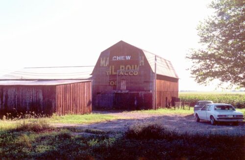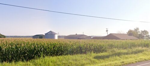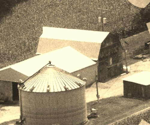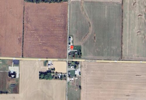 *GONE* (razed and removed) At the northeast corner of the intersection of IN-62/IN-161 (E. Degonia Rd.; CR-150 N.) & CR-375 E. Two ends. Red backgrounds.