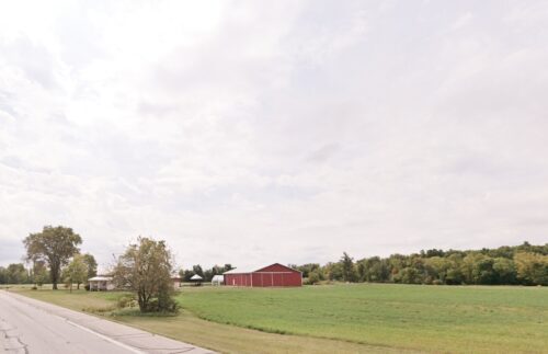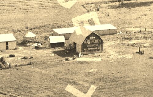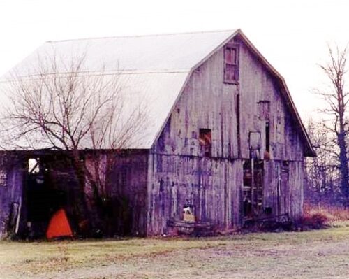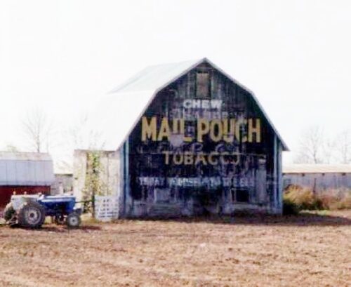 *GONE* (replaced with a new barn) Along the southwest side of US-27 northwest of W. Fountain City Pike, in Fountain City, by 0.9 mile. The barn is on the left side of US27 headed northwest. The Mail Pouch sign faced north. One end. Black background.