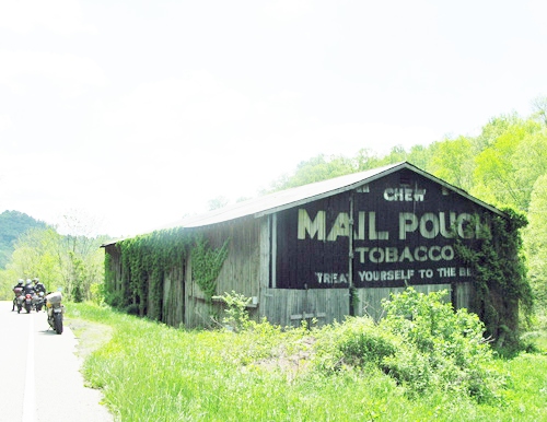 Along the south side of KY-32 east of the junction of KY-32 and KY-7 at Sandy Hook by about 1.5 miles. The barn is on the right side of the highway headed east. Two ends. Black backgrounds.