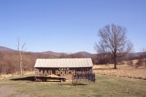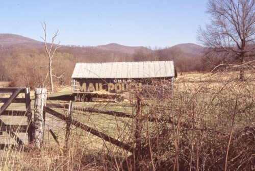*GONE* (razed and removed) Along the southest side of McMullen Hwy SW (US-220) north of the WV State line by about 1.2 miles (north of Keyser, WV). The barn was on the right side of the highway headed northeast. The Mail Pouch sign faced northwest. One side. Black background.