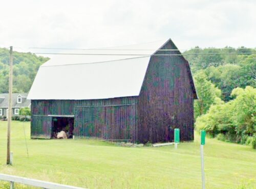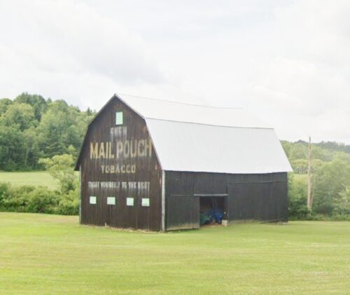 Where to find it NY Rt. 417 (Portville-Ceres Rd.) southwest of the Wellsville St. (NY Rt. 417)/Main St. (NY Rt. 275) intersection, in Bolivar, by about 4.2 miles. The barn is on the right side of the highway headed southwest. Two ends. Black. The Mail Pouch sign facing northeast is fading. The Mail Pouch sign facing southwest is *GONE* (painted over).