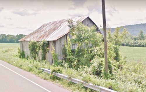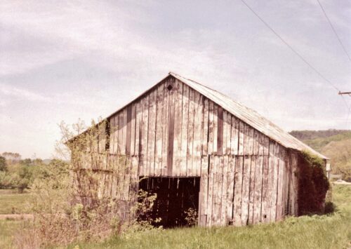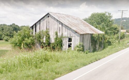 *GONE* (fallen or raised and removed) US Rt. 52 (Ohio River Scenic Byway) west of Scioto Co. line by about 7.4 miles. East of Upper Rome Rd. by about 600'. Barn was on the left side of US Rt. 52 headed west from the Scioto Co. line. Two ends. Black backgrounds.