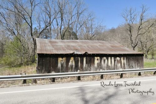 US-52 west of OH-221 by about 3.9 miles. East of MPB 35-08-03 by about 0.5 mile. On the west side of the highway headed west. The Mail Pouch sign faces south. One side. Black background. Greatly faded.