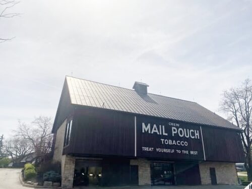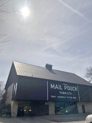This barn has several unique features. First it is one of the few, if not the only, authentic brown Mail Pouch barn. Second, this is the only Mail Pouch barn that Harley numbered. (17,121) The story goes something like this: Harley was contracted to paint the Mail Pouch sign on the barn. On completion, the owner wanted Harley to number it. Harley had no idea of the exact number of barns that he had painted, but gave no clue to this lack of knowledge as he put the number under his signature. The owner was happy, Harley grinned, and the number is still visible today. In relaying the story years later, Harley said, 'the damn fool wanted a number, so I gave him a number.'