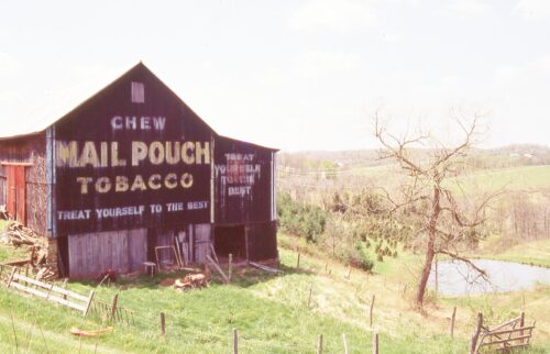 OH Rt. 78 (Lewisville Rd.), west of OH Rt. 800 (Sycamore St.), in Woodsfield, by about 3.0 miles. The barn is on the right side of the highway headed south. The MP sign faces north. One end. Black.