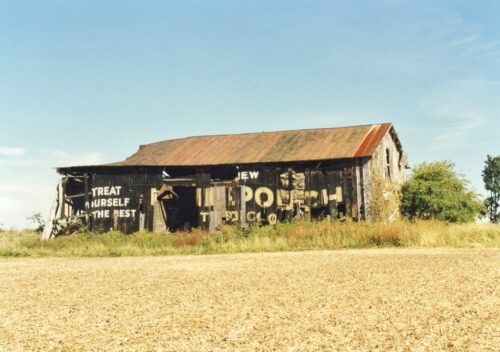 Where to find it *GONE* (fallen and removed) Along the north side of US-224 (Benjamin Franklin Hwy.) east of OH-19 by 1.9 miles. Just west of TR-77 (Cooper Rd.) by 250'. The barn was on the left side of the highway headed east. The Mail Pouch sign faced west. One side. Black Background.