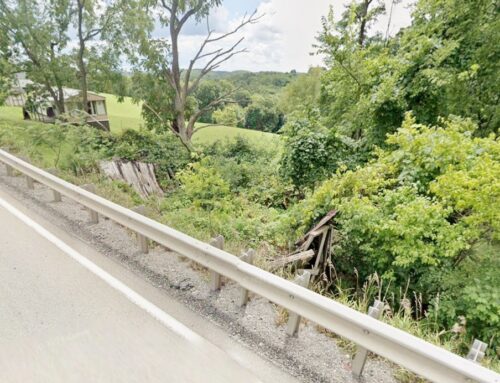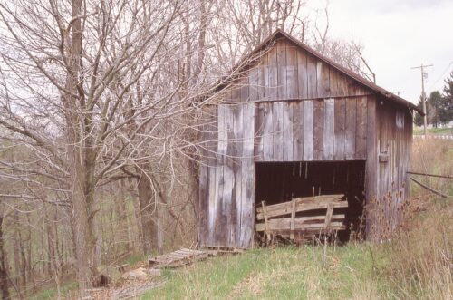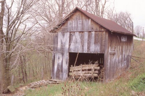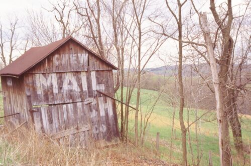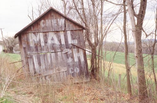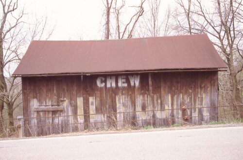 *GONE (fallen)* PA Rt. 21 (Roy Furman Hwy.) northwest of PA Rt. 21/PA Rt. 18 (Golden Oaks Rd.) split by about 10.4 was is on the left side of the highway headed west. Two ends and one side. Black.