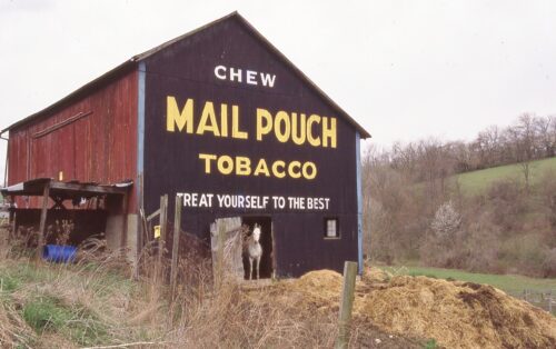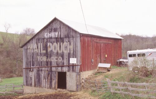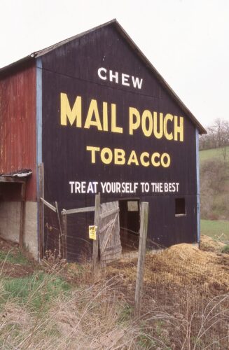 Doug Hollingsworth reported that as of March 2014 the Mail Pouch sign on the southwest end of the barn had faded away.