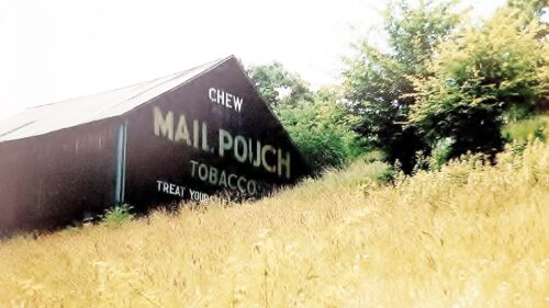 *GONE (fallen)* Alexander H. Lindsay Memorial Hwy. (PA-28) southwest of US-322 (28th Division Hwy.) by about 5.0 miles. The barn was on the right side of the highway headed south. Two ends. Black backgrounds.