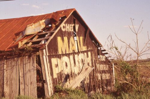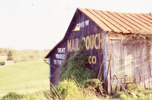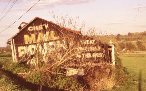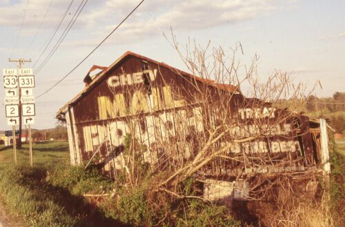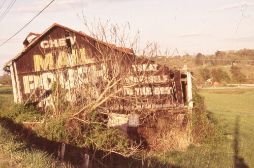 Where to find it *GONE* (fallen and removed) Along the southeast side of New Haven Rd. (WV-62/old US Rt. 33/Blue and Grey Trail), southwest of the intersection with WV-2 by 0.1 mile. The barn was on the left side of New Haven headed southwest from WV-2. Two ends. Black backgrounds.
