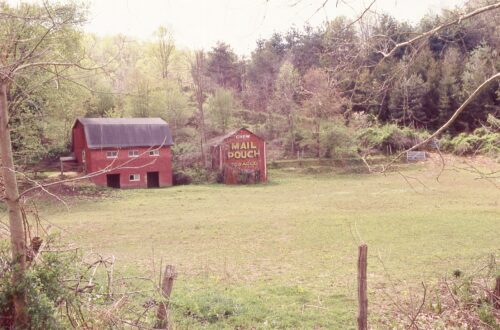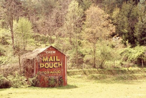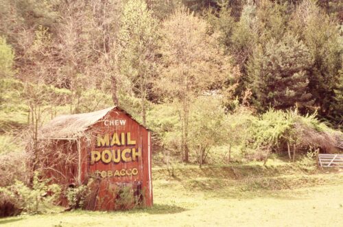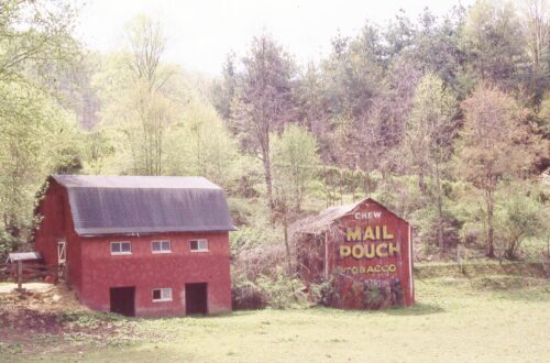 *GONE* Along the west side of Charleston Rd. (US-119) south of US-33 (Main St.), in Spencer, by about 5.5 miles. The barn was on the right side of Charlseton Rd. headed south from Spencer. The Mail Pouch sign faced east. One end. Red background.