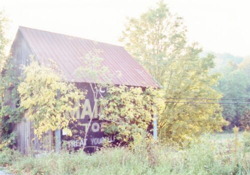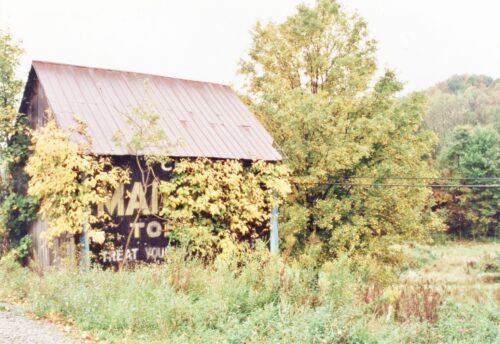 Where to find it *GONE (fallen and removed)* Along the northwest side of Clarksburg Rd. (US-119/WV-20) northeast of US-33 by about 3.9 miles. The barn was on the left side of Clarksburg Rd. headed northeast. The Mail Pouch sign faced northeast. One side. Black background.