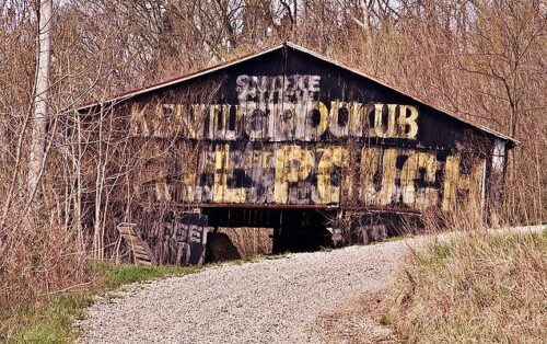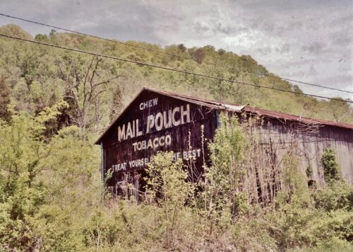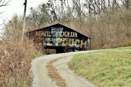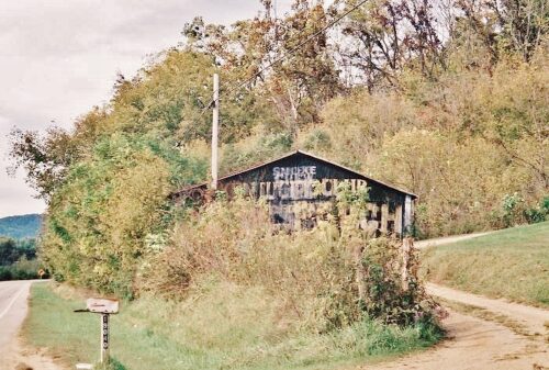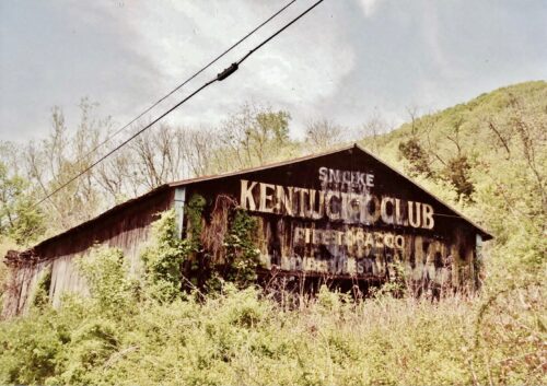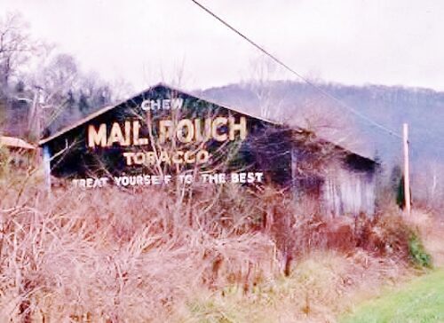Where to find it *GONE* (fallen) US Rt. 52 (Ohio River Scenic Byway) west of the Scioto County line by about 9.5 miles. There was a Maail Pouch sign on the west end and on the south side. The Kentucky Cluyb sign was on the east end. Two ends and one side. Black background.