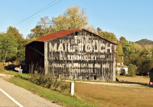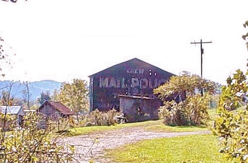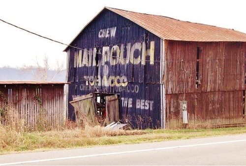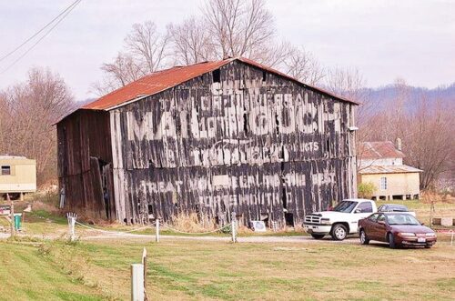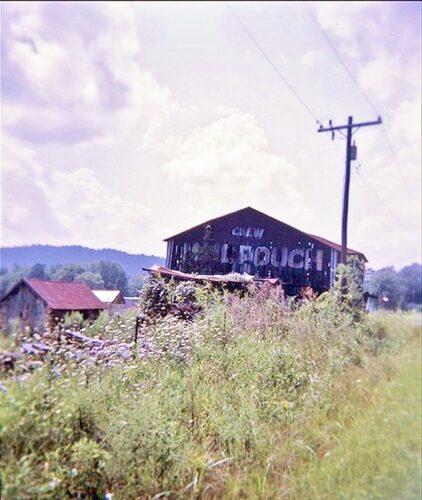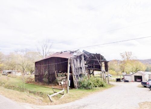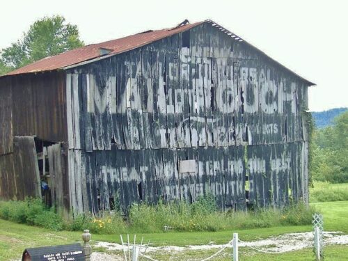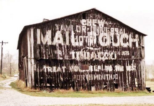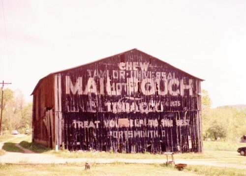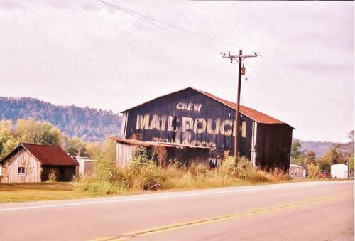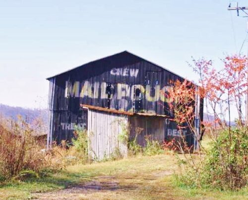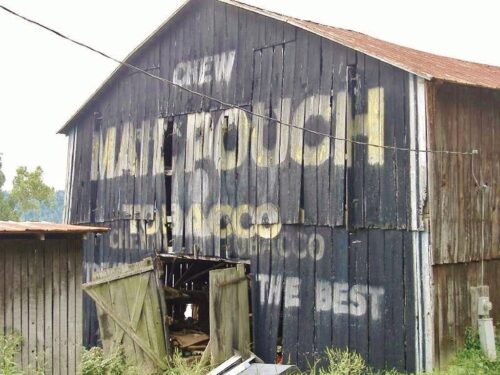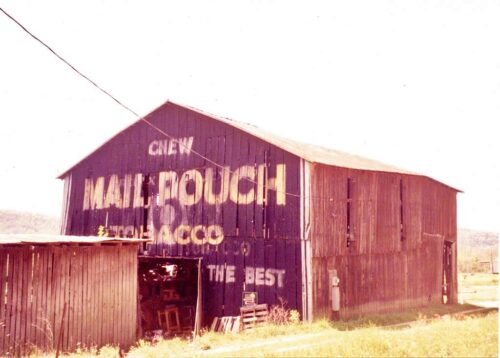 The Southwest end of the barn has fallen away and the Mail Pouch sign is gone. The remainer of the barn will not last much longer.
