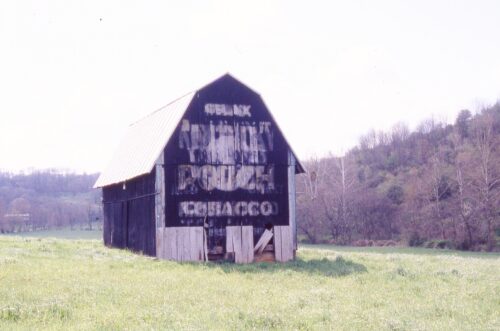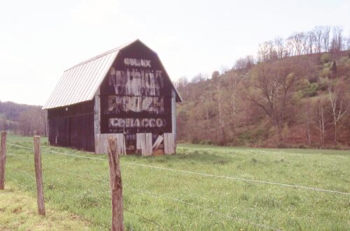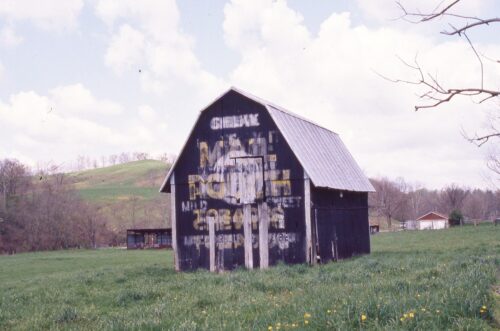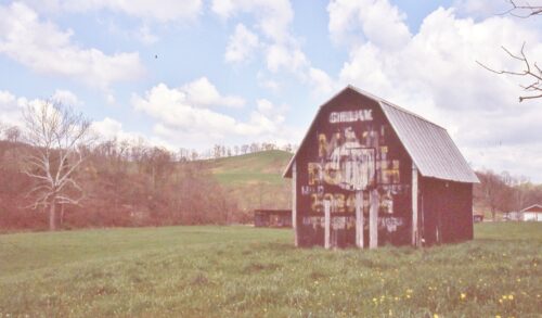 *GONE* (razed and removed) Along the southwest side of (WV-16) (S. Spring St.) south of Main St., in Harrisville, by 0.7 mile. The barn was on the right side of the street headed southeast. It was almost directly across the street from the Wigner Ave. intersection. Two ends. Blackgrounds.