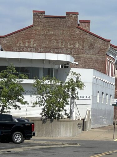 Where to find it Along the southwest side of S. Water Street between Kentucky Ave. & Broadway St., in Paducah. The brick building is on the left side of the street headed northwest from Kentucky Ave. toward Broadway St. Two ends. Two-story brick building. Original black backgrounds. Sign on the southeast end is greatly faded. Sign on the northwest end has faded away.