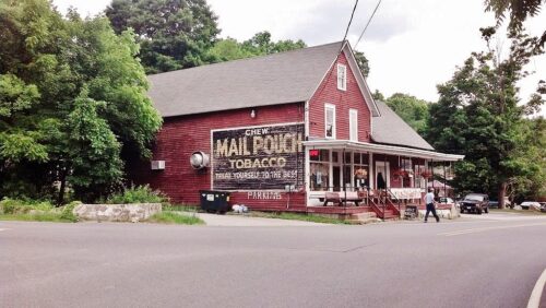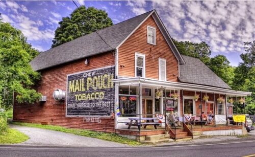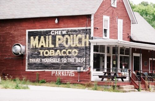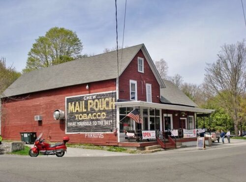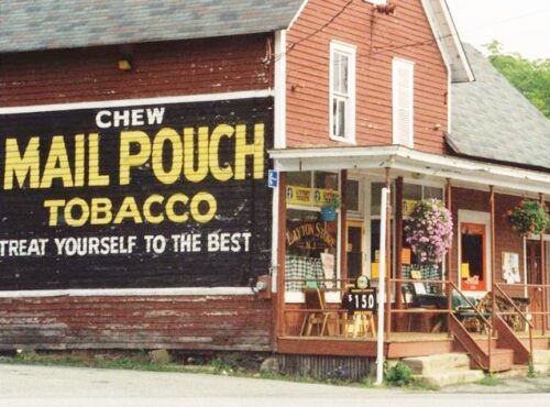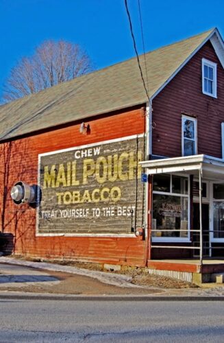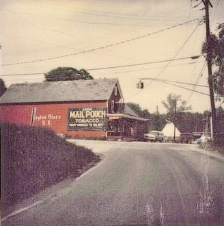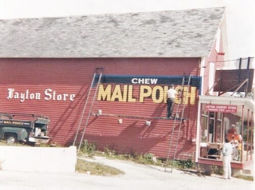 Photo 3 was taken by Harley Warrick, in 1977, after he finished painting the Mail Pouch sign on the side of 'Layton's Country Store and Cafe'.