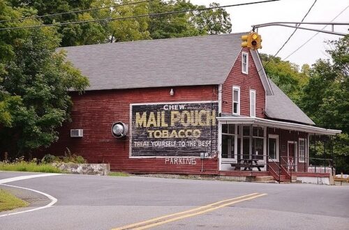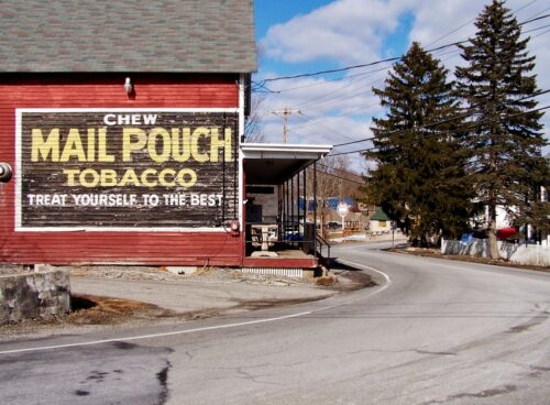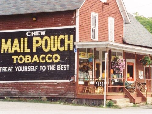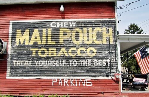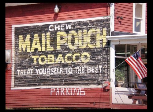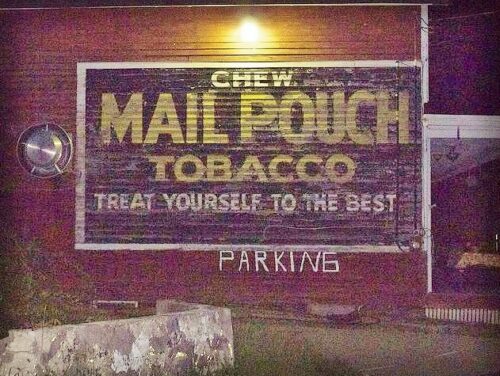 Photo 2 was taken by Jeffrey Hendershot while Harley Warrick was painting the Mail Pouch sign in 1977.