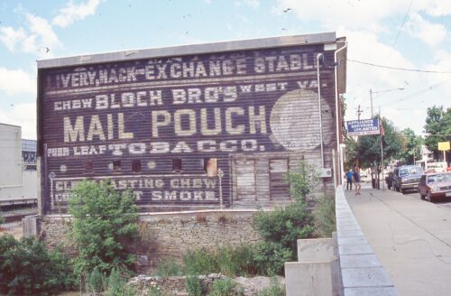 *GONE (sided over)* Along the south side of Broad St., in Waverly, between Clark St. & Loder St. The building is on the left side of the street headed west. The MP sign faced east. One side. Black.