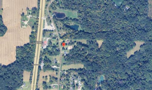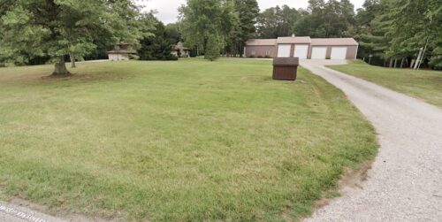 *GONE* (razed and removed) Along the east side of Old State Rd. north of the intersection with E. Boonville-New Harmony Rd. by 0.6 mile. The barn was on the right side of Old State Rd. headed north from the intersection. The Old Hillside Tobacco sign faced west. One side. Blck background.